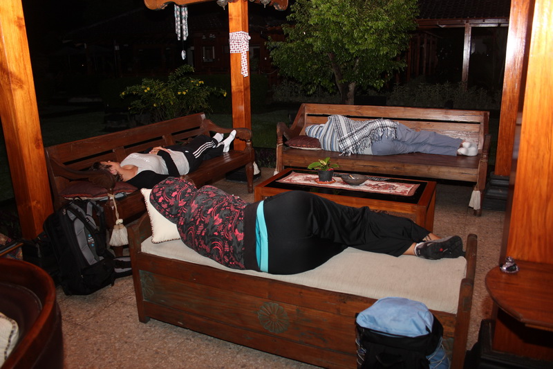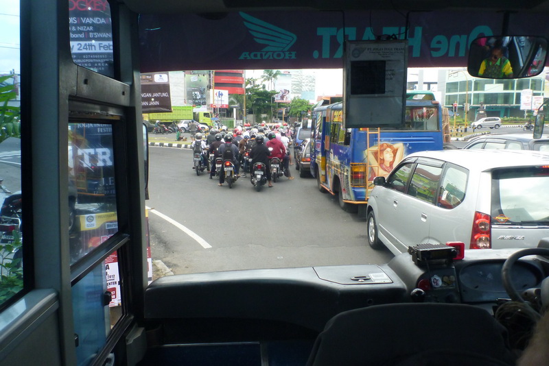 První velkou cestu mimo Singapur jsme naplánovali na "recess week" neboli malou pauzu uprostřed semestru jako roadtrip po dvou indonéských ostrovech Jávě a Bali. Let do Jakarty a pak už pomocí vlaků, busů nebo minivanů po zajímavých místech Jávy, přejezd trajektem na Bali a tam relax a potápění. Z časových důvodů se nakonec cesta po Jávě stala spíše průletem, ale to podstatné jsme snad zvládli. Ale bylo to náročné - v pátek 17. února ráno jsme odlétali a do postele jsme se dostali až druhý den večer ve městě Solo. Mezi tím jsme zvládli doletět do Jakarty, nasednout na vlak, ve dvě ráno dojet do města Yogyakarta, nechat se odvézt do Manohara Hotel, který umožňuje prohlídku budhistického chrámu Borobudur ještě před otevírací dobou během východu slunce, v poledne přejet do hinduistického chrámového komplexu Prambanan a odtud ještě jedním z místních busů s vrahem za volantem do města Solo.