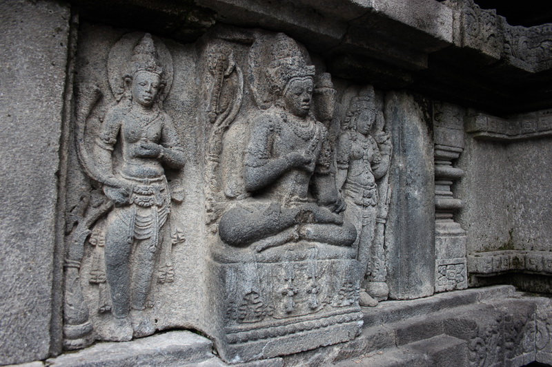 Pak jsme se začali přesouvat do druhého chrámového komplexu. A začali jsme objevovat vražednost místní dopravy. A to autobus s otevřenými dveřmi, v nich stojícím "naháněčem" a systémem nástupu a výstupu "nezastavujeme, máme zpoždění" se později ukázal jako bezpečná pohoda! Komplex Prambanan je soubor majestátních hinduistických chrámů z 9. a 10. století a je také zapsán na listině památek UNESCO. V roce 2006 zasáhlo oblast zemětřesení a celý komplex silně poškodilo, některé z chrámů nenávratně. Z Prambananu jsme se ještě potřebovali dostat do města Solo, abychom druhý den stihli ranní vlak směr Bromo NP, takže jsme nasedli do lokálního autobusu. Cena za 90min jízdu 15 Kč (7000 IDR), ale o to víc jsme během té cesty zestárli. Poznatky z jízdy: plná čára není zeď, dvojitá plná čára také není zeď, zeď není ani protijedoucí auto a křižovatka se dá projet i na červenou a v protisměru!