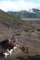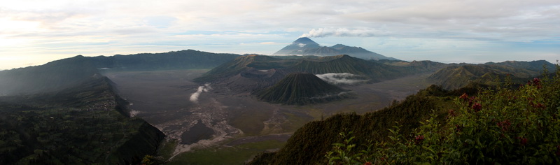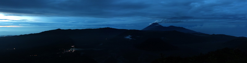 Další den jsme celý strávili cestováním a v podvečer jsme konečně dorazili do sopečných hor do vesničky Cemoro Lewang v Bromo-Tengger-Semeru National Park. Ubytování jsme měli zařízené v nádherném chatkovém hotýlku Yoschi's s příjemným personálem a vynikajícím jídlem. Na spánek ovšem moc času nebylo, neboť už ve 3:30 jsme vyjížděli jeepy na východ slunce a poté pokračovali krátkým výstupem na jeden z menší kráterů uvnitř kaldery. Východ slunce magický, rozhled z kráteru majestátní. Ale největší zážitek by asi byl výstup na Mount Semeru (na fotkách ta dýmající sopka v pozadí). Ten ovšem trvá dva dny, tak třeba někdy příště...