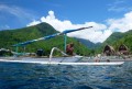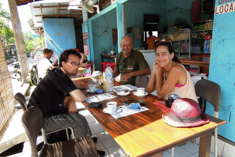Na druhý den jsme měli domluvený minivan od hotelu až do Denpasaru na Bali (11 hodinová cesta) za krásných 550 Kč na osobu. Ovšem řidič byl ještě větší vrah než všichni autobusáci před tím, takže nás ta cesta stála tak dva roky života. V Denpasaru jsme ještě ukecali jednoho taxikáře, aby nás odvezl do Amedu (2,5 hod) za 200 Kč na osobu. Chudák nevěděl, že ona česká potápěčská základna, kam jsme směřovali, je ještě kus za Amedem už docela v divočině a že bude muset se svoji nablýskanou Toyotou projíždět dva brody (sice téměř bez vody, ale stejně to vypadalo, že zatraceně litoval toho, že nás vzal). Selang Resort jsme nakonec našli a začal ráj na zemi, protože "nic není problém na Bali"...